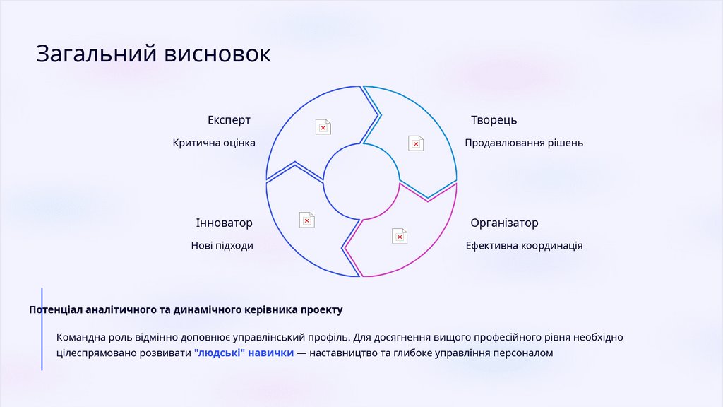 Командна роль відмінно доповнює управлінський профіль. Для досягнення вищого професійного рівня необхідно