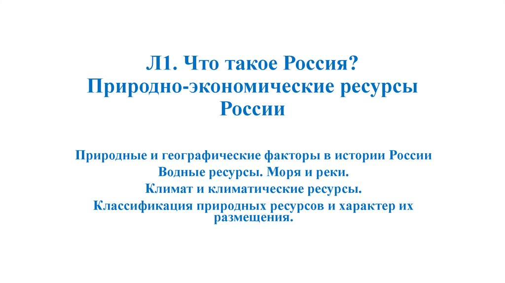 1. Л1. Что такое Россия? Природно-экономические ресурсы России