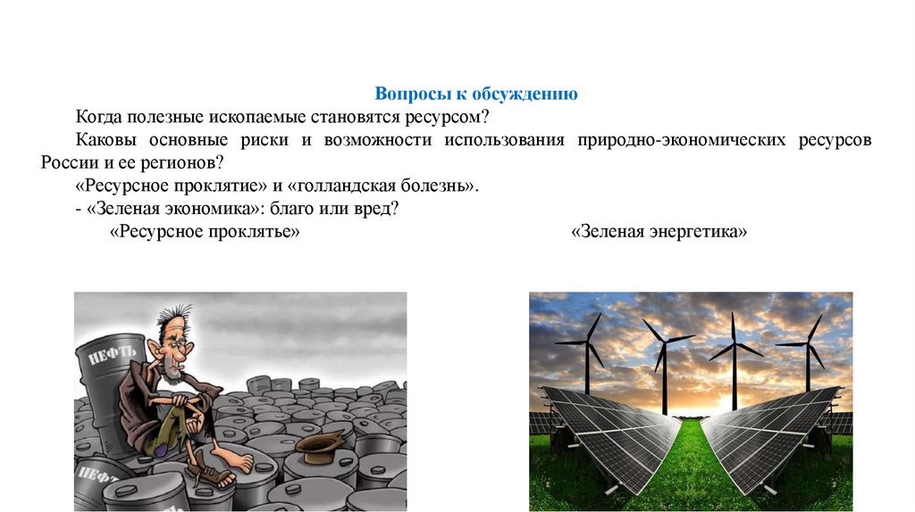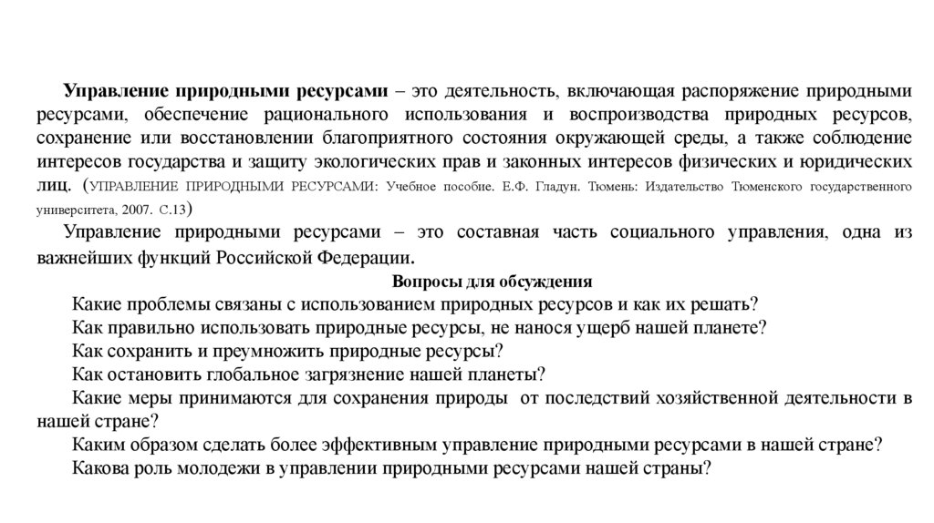 Управление использованием природных ресурсовВопросы к обсуждению