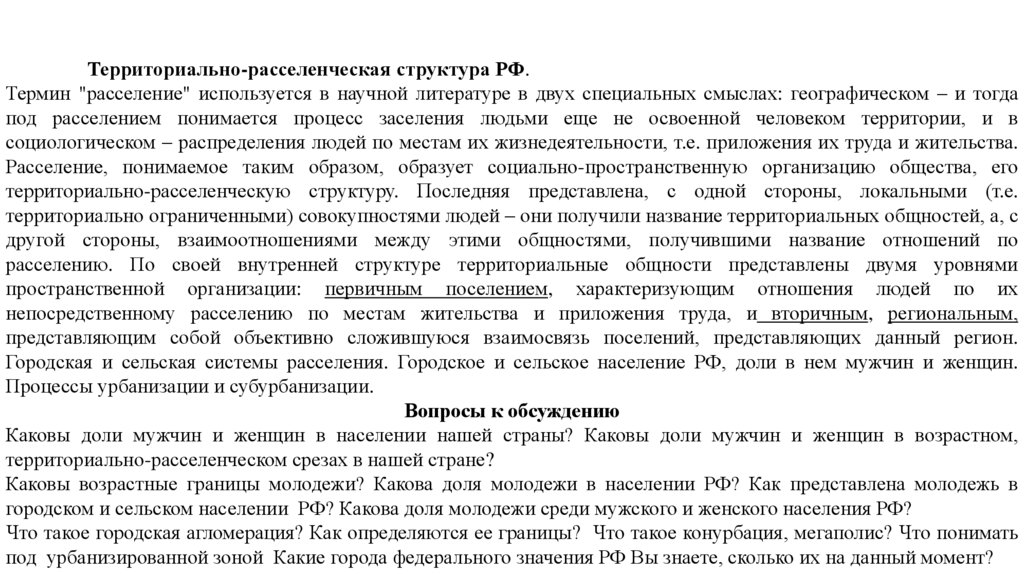 Территориально-расселенческая структура РФ.