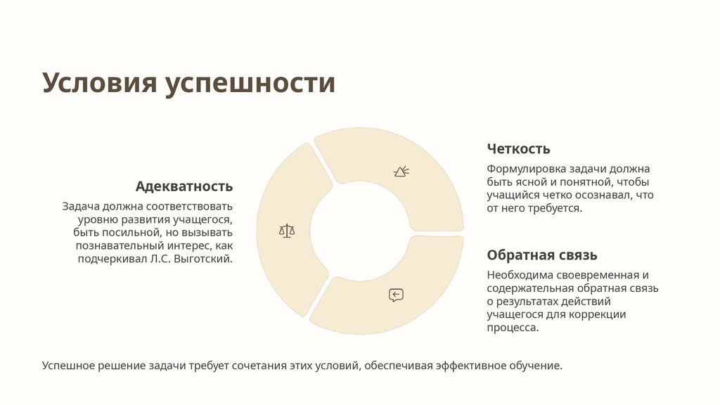 Успешное решение задачи требует сочетания этих условий, обеспечивая эффективное обучение.