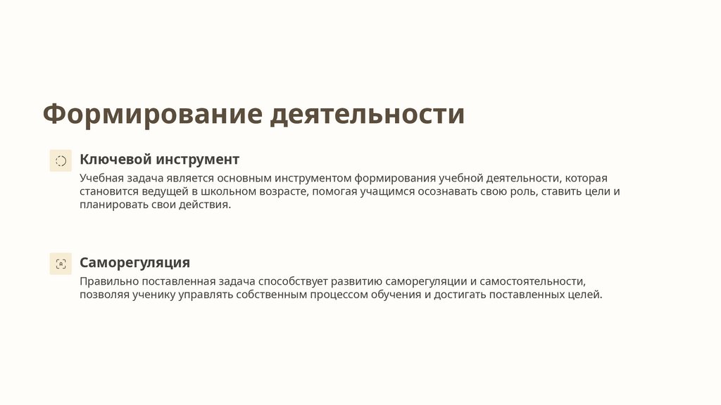 Учебная задача является основным инструментом формирования учебной деятельности, которая