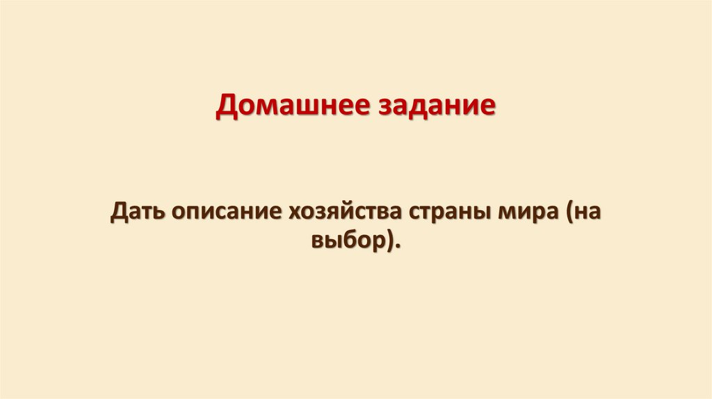 Домашнее заданиеДать описание хозяйства страны мира (на