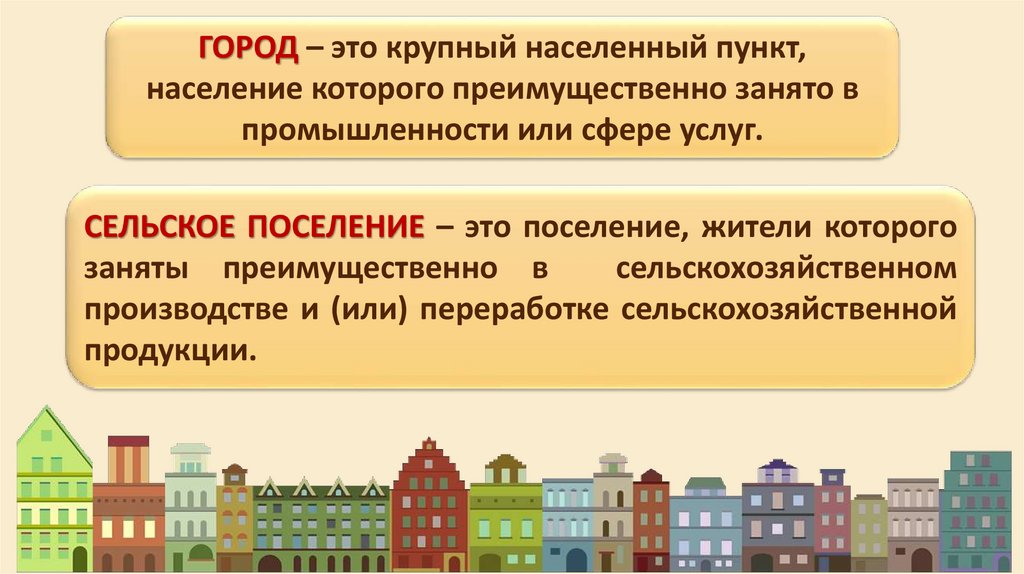 ГОРОД – это крупный населенный пункт,население которого преимущественно занято в