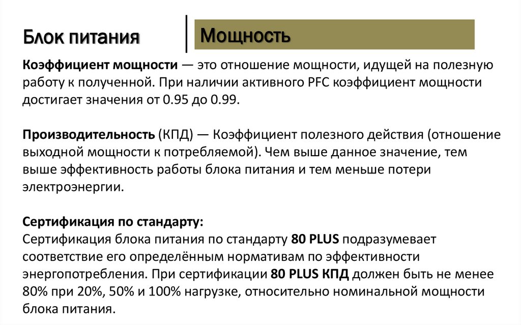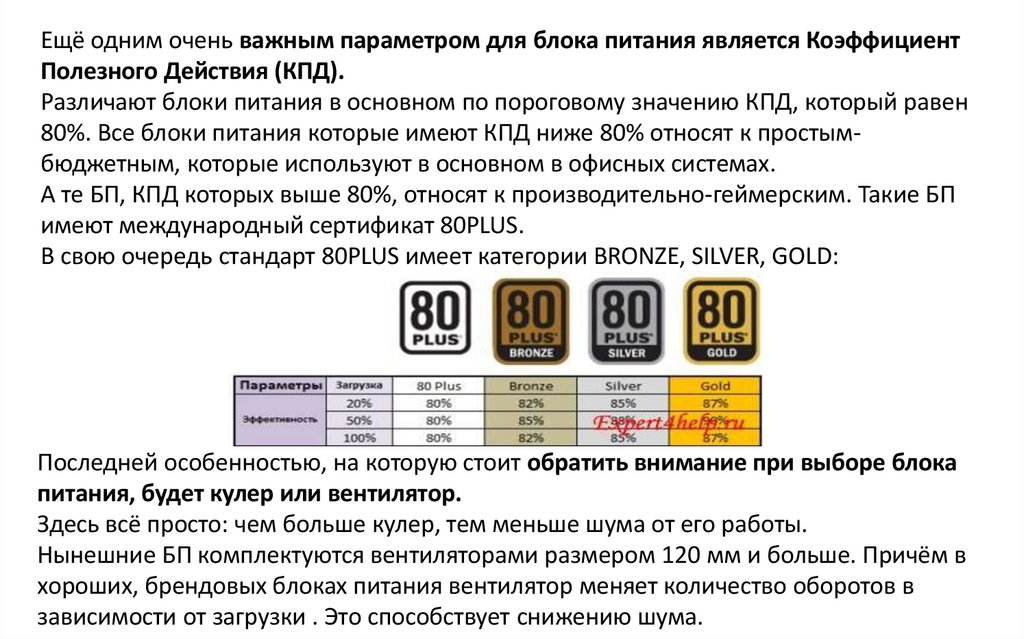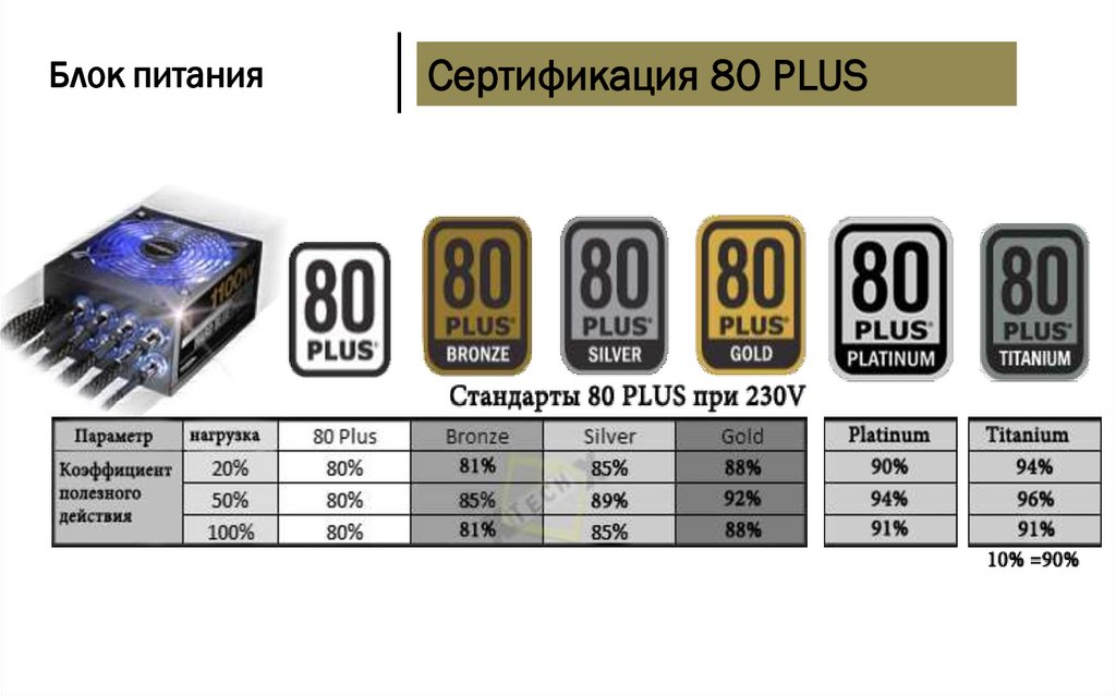энергопотребления. При сертификации 80 PLUS КПД должен быть не менее