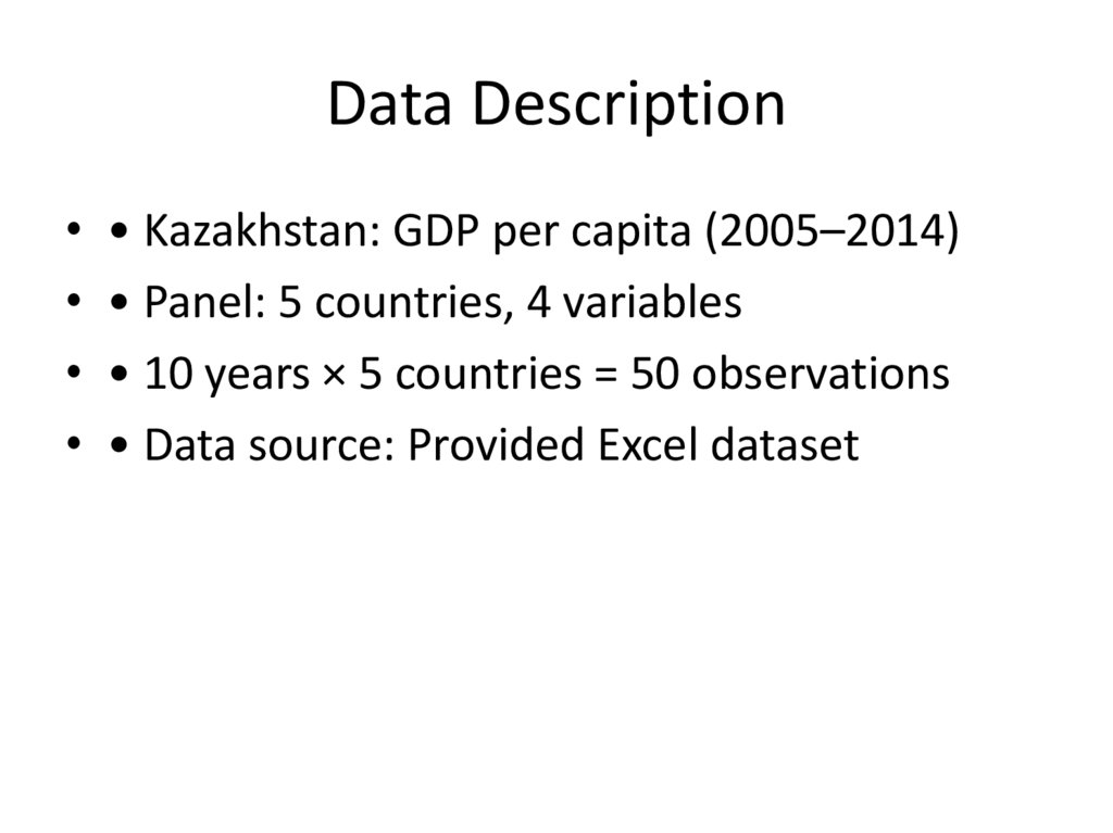 Data Description• • Kazakhstan: GDP per capita (2005–2014)
