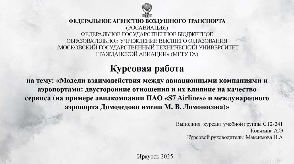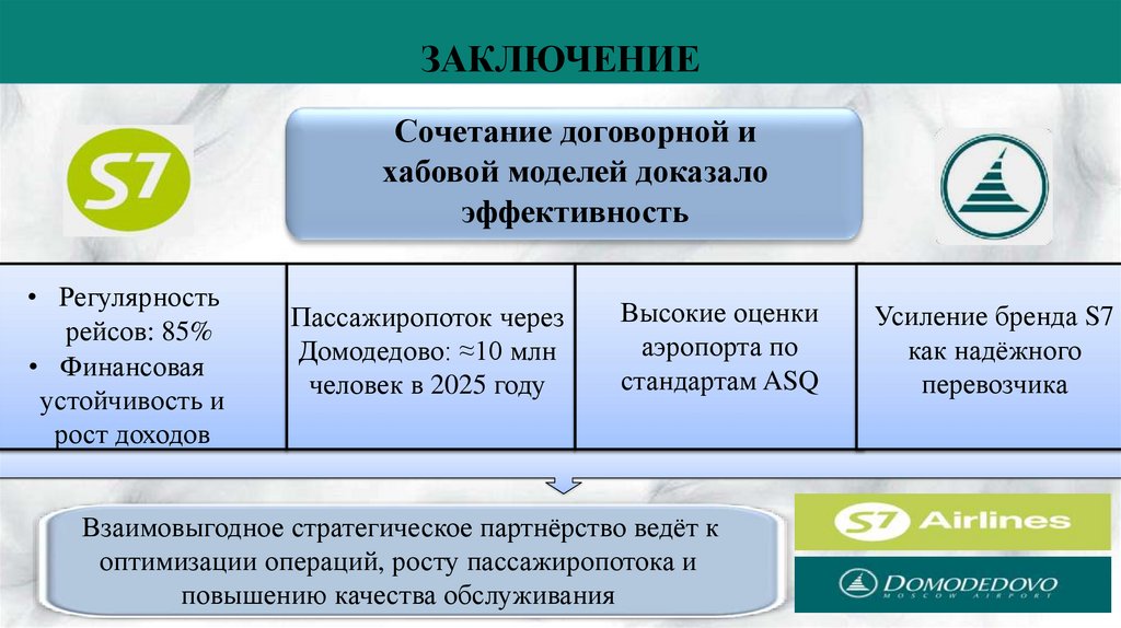 ОЦЕНКА ЭФФЕКТИВНОСТИ МОДЕЛЕЙВЗАИМОДЕЙСТВИЯ S7 AIRLINES И ДОМОДЕДОВО