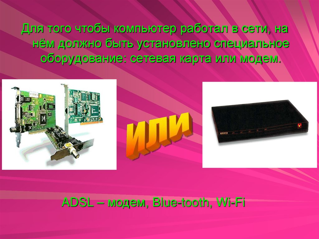 Для того чтобы компьютер работал в сети, нанём должно быть установлено специальное