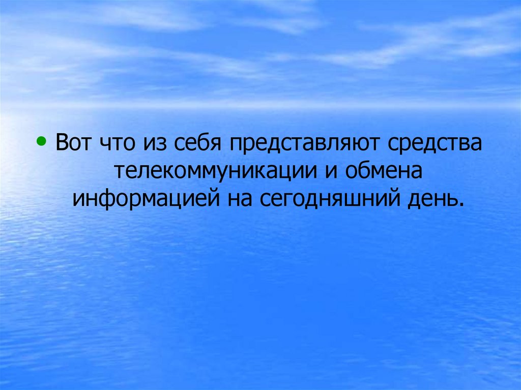 • Вот что из себя представляют средствателекоммуникации и обмена