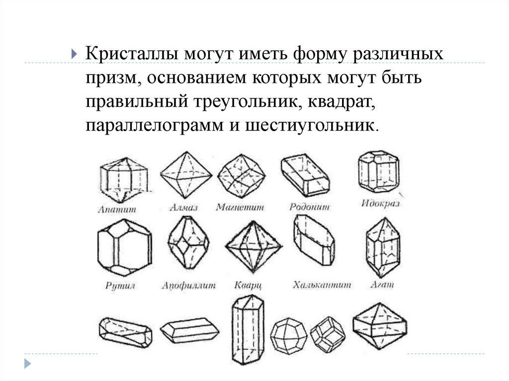 Кристаллы могут иметь форму различныхпризм, основанием которых могут быть