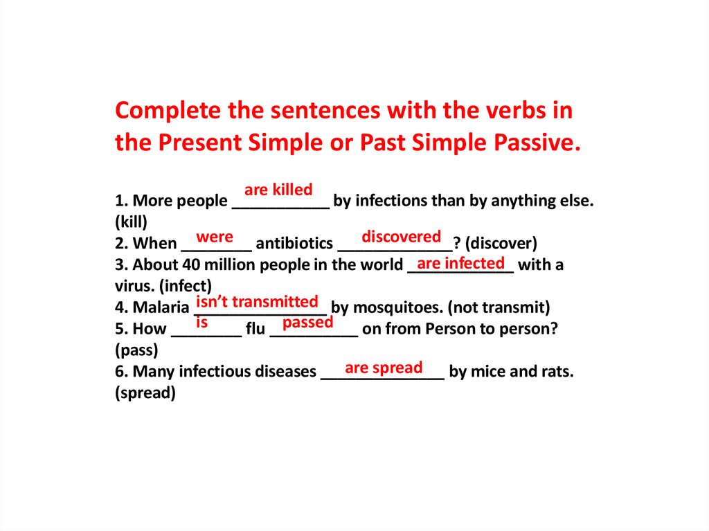 1. More people ___________ by infections than by anything else.