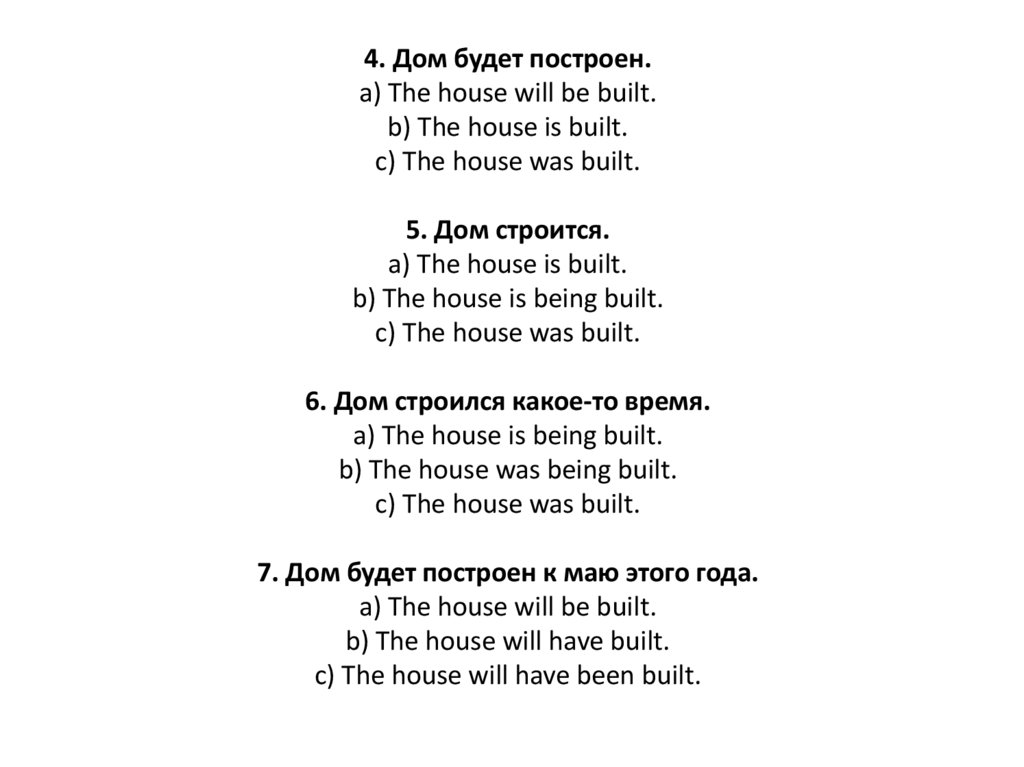 4. Дом будет построен.a) The house will be built.