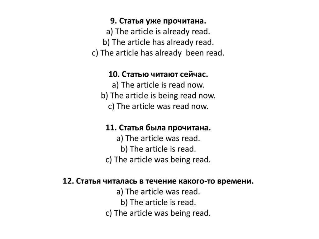 9. Статья уже прочитана.a) The article is already read.