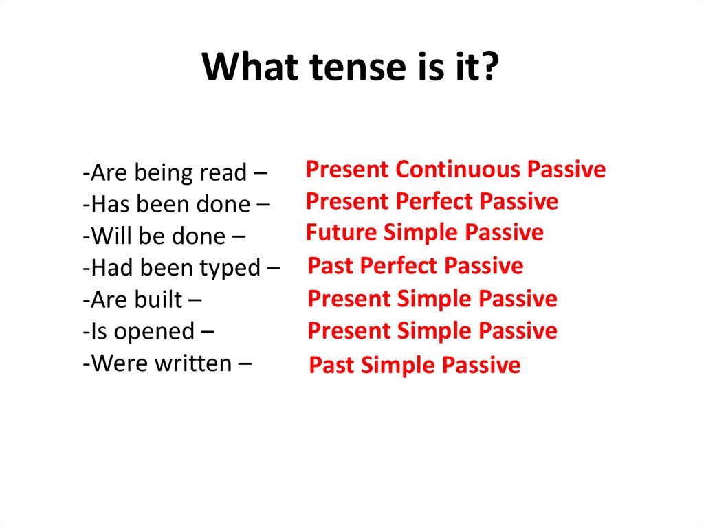 What tense is it?-Are being read – Present Continuous Passive