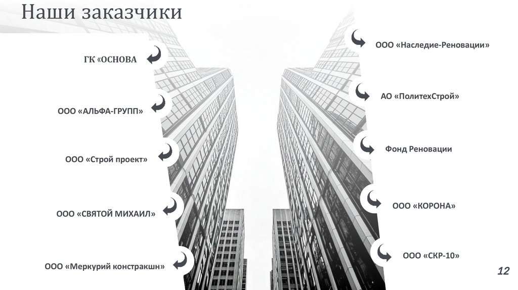 Наши заказчикиООО «Наследие-Реновации»