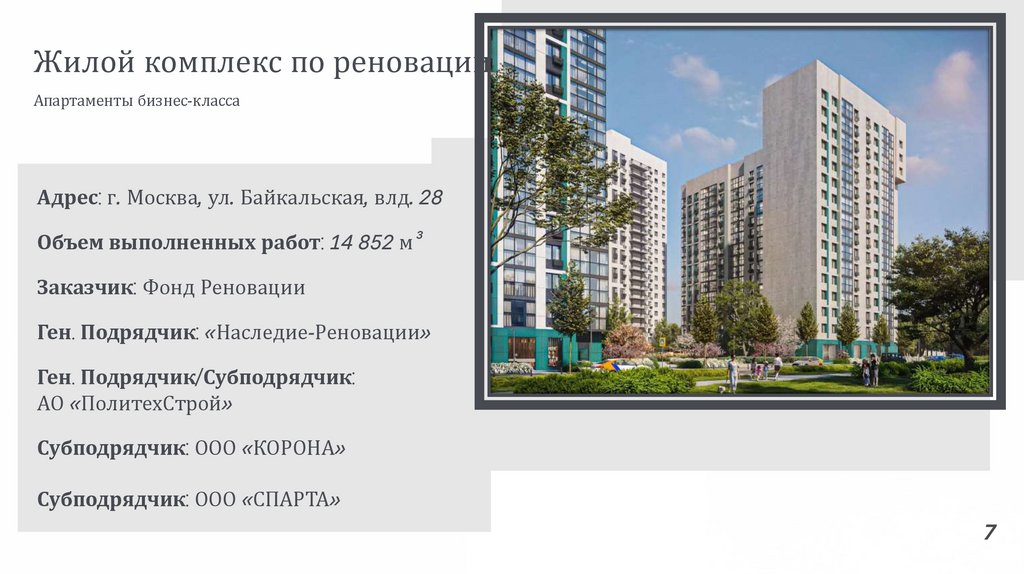 Жилой комплекс по реновацииАпартаменты бизнес-класса