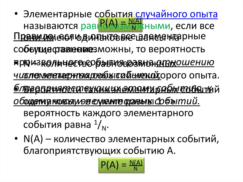 • Элементарные события случайного опытаN(A)