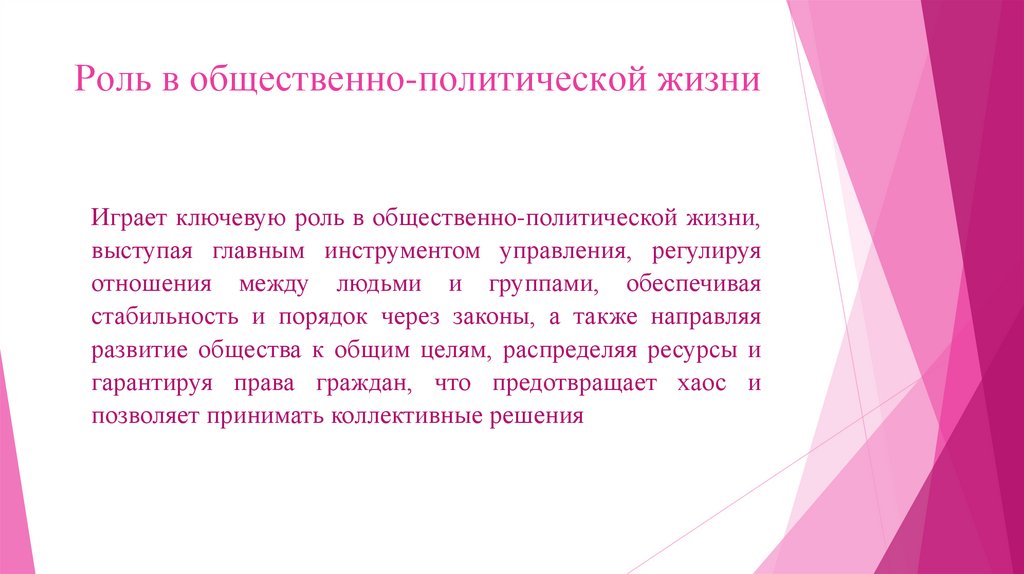 Роль в общественно-политической жизниИграет ключевую роль в общественно-политической жизни,