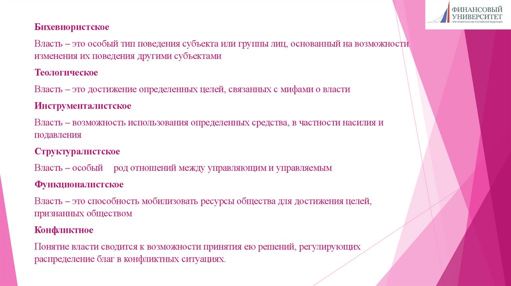 БихевиористскоеВласть – это особый тип поведения субъекта или группы лиц, основанный на возможности