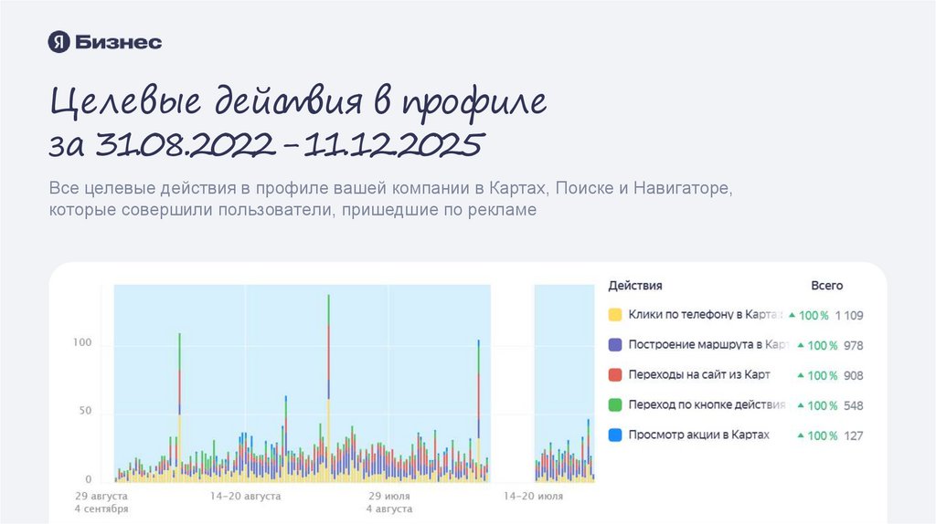 Все целевые действия в профиле вашей компании в Картах, Поиске и Навигаторе,