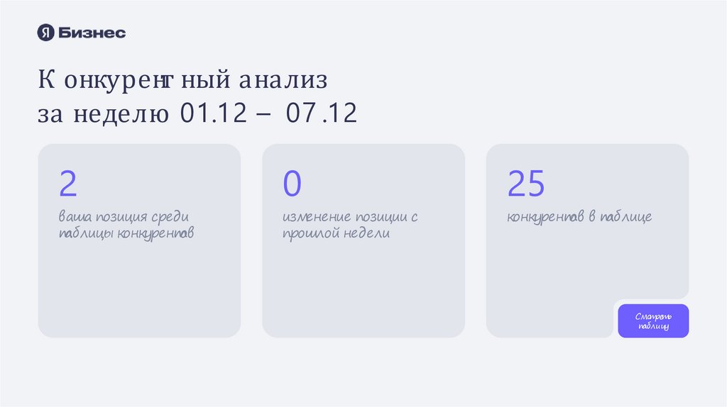 К онкурент ный анализза неделю 01.12 – 07 .12
