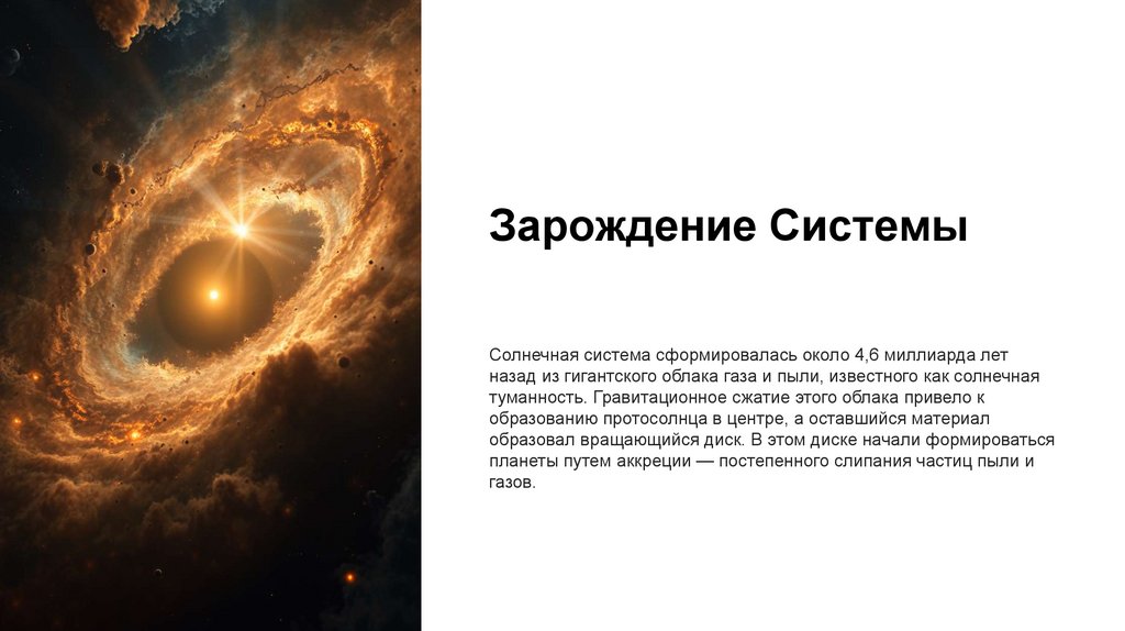 Зарождение СистемыСолнечная система сформировалась около 4,6 миллиарда лет