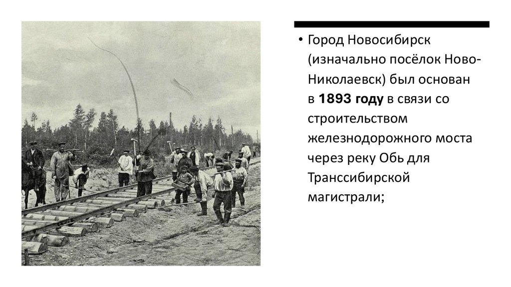 • Город Новосибирск(изначально посёлок НовоНиколаевск) был основан