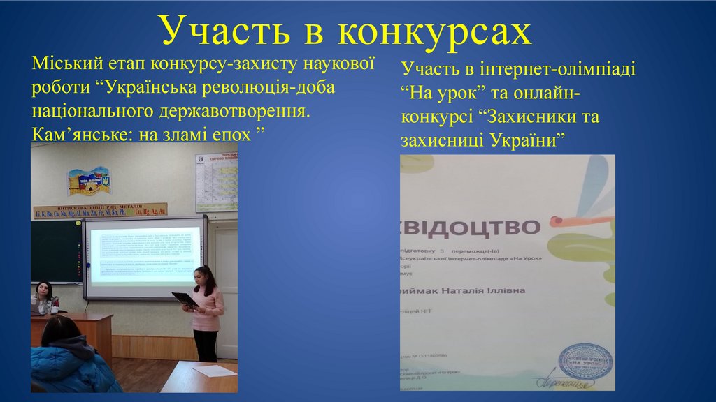 Участь в конкурсахМіський етап конкурсу-захисту наукової