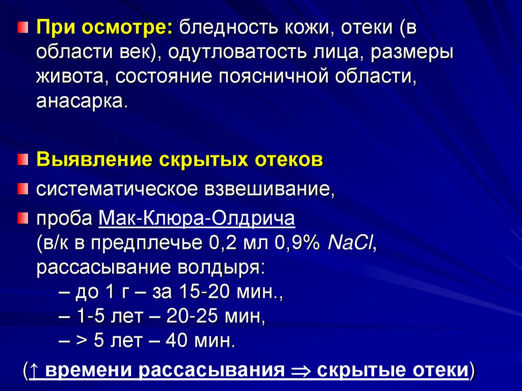 Симптомокомплекс поражения клубочков почек: Генерализованные отекиВысокая степень протеинурии (>3,5 г белка/сут)