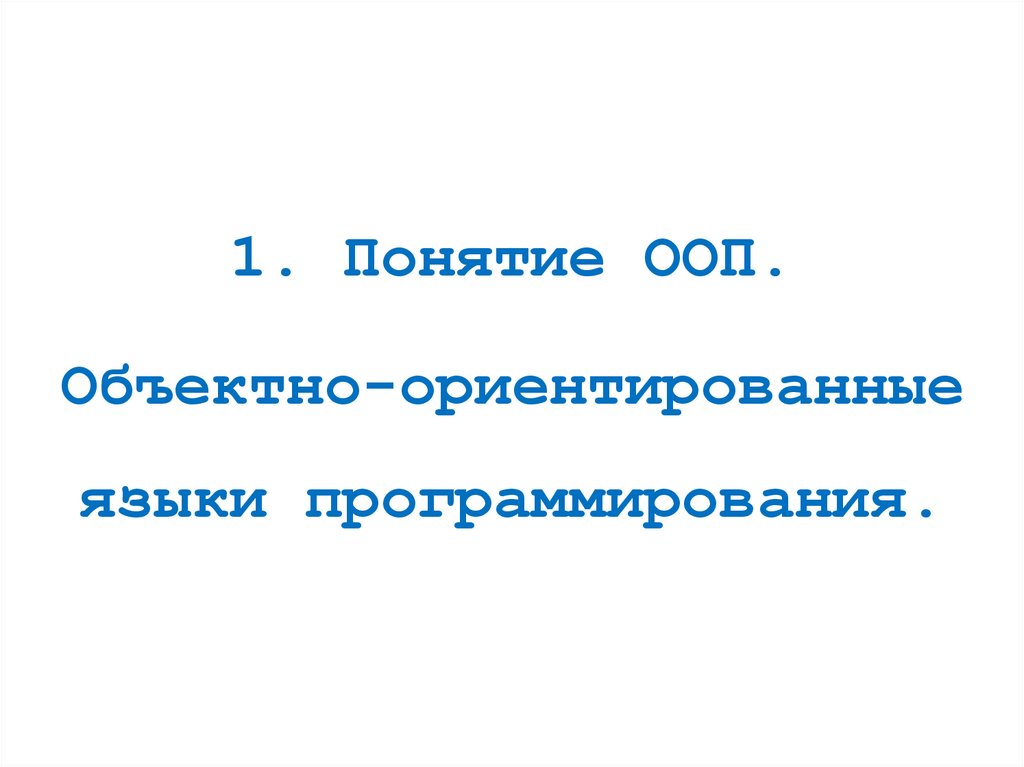 1. Понятие ООП. Объектно-ориентированныеязыки программирования.