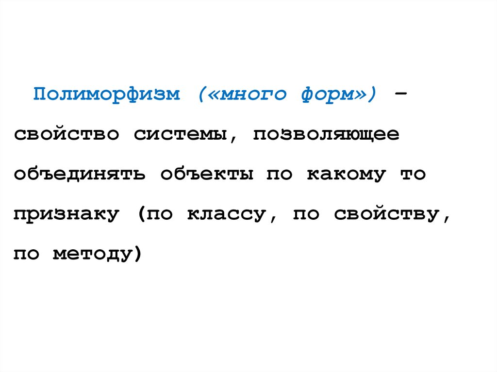 Полиморфизм («много форм») –свойство системы, позволяющее