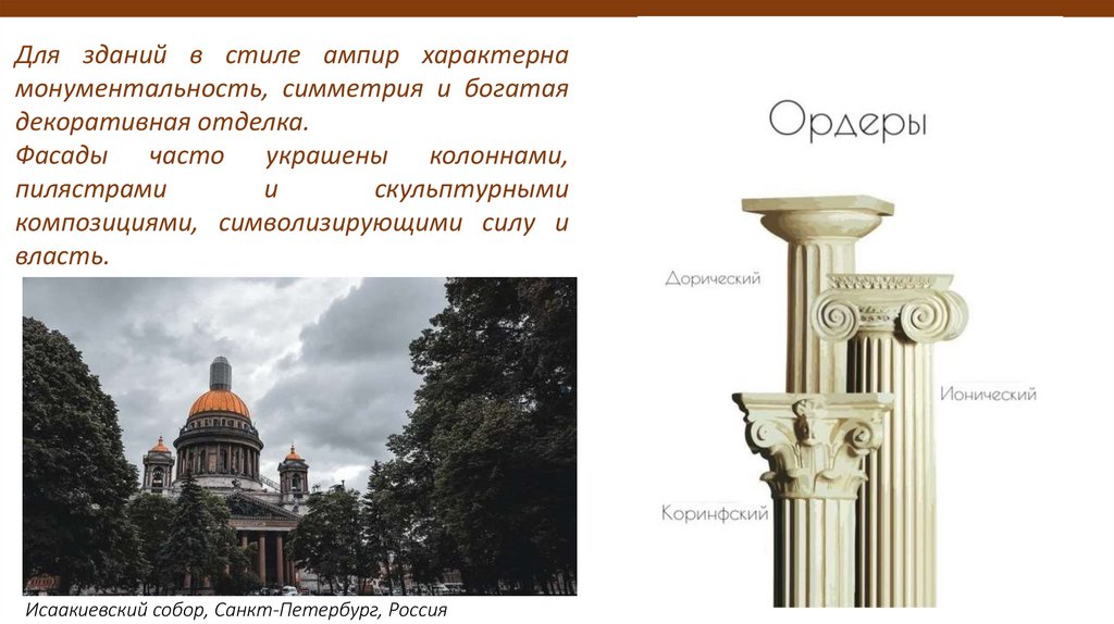 Для зданий в стиле ампир характернамонументальность, симметрия и богатая