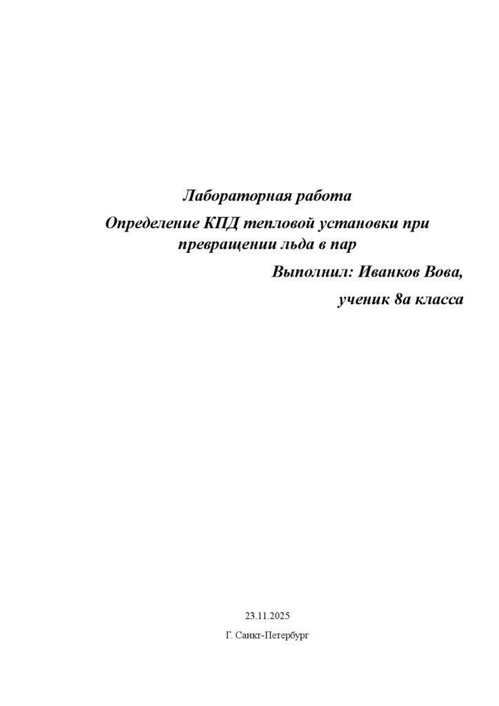 Цель работыЭкспериментальное измерение КПД тепловой установки при превращении льда в пар.