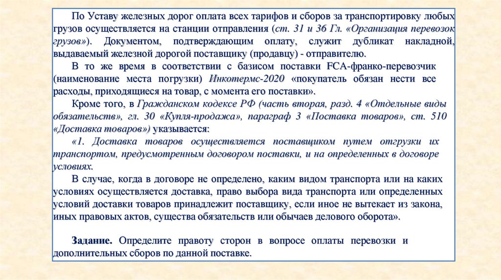 Задание. Определите правоту сторон в вопросе оплаты перевозки и
