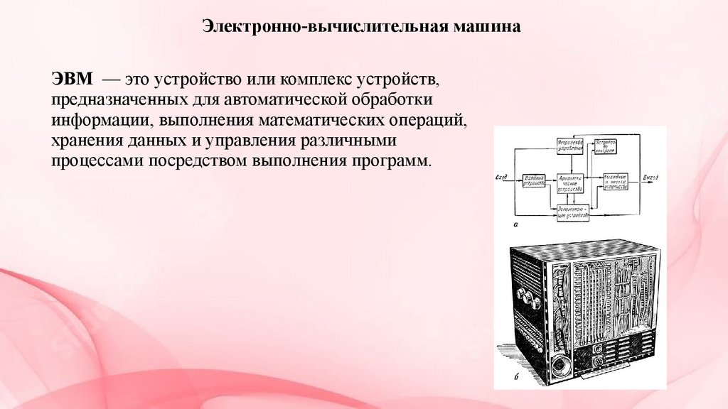 Электронно-вычислительная машинаЭВМ — это устройство или комплекс устройств,