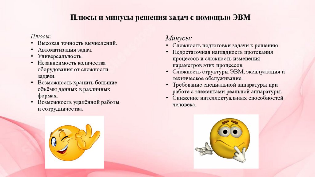 Плюсы и минусы решения задач с помощью ЭВМПлюсы:
