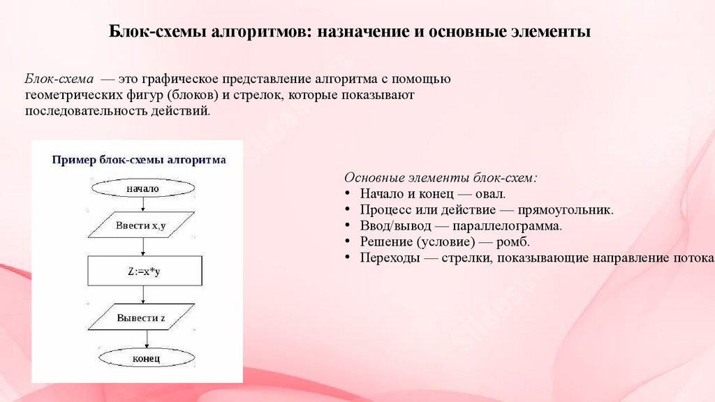 Блок-схемы алгоритмов: назначение и основные элементыБлок-схема — это графическое представление алгоритма с помощью