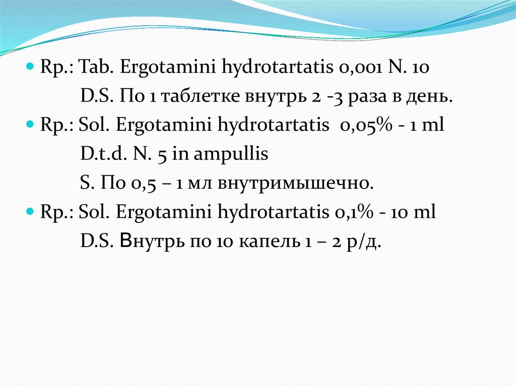 Rp.: Sol. Ergotali 0,05% 1 ml