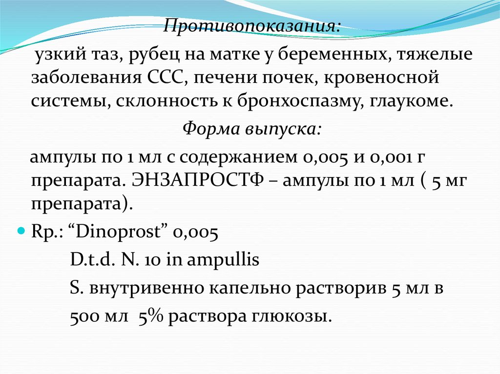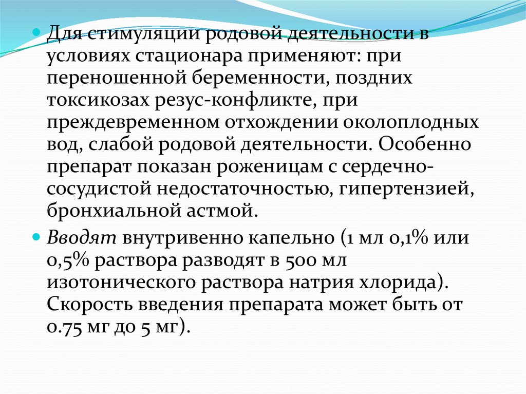 Противопоказан при угрожающем разрыве матки,при несоответствии размеров таза и плода, после
