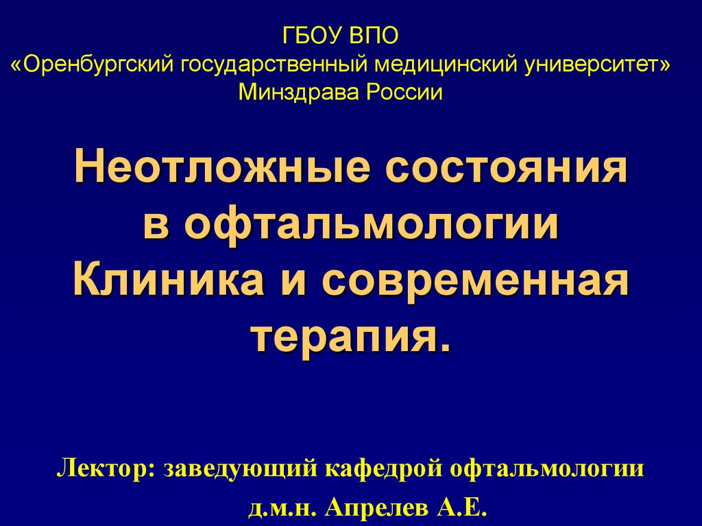 1. Неотложные состояния в офтальмологии Клиника и современная терапия.