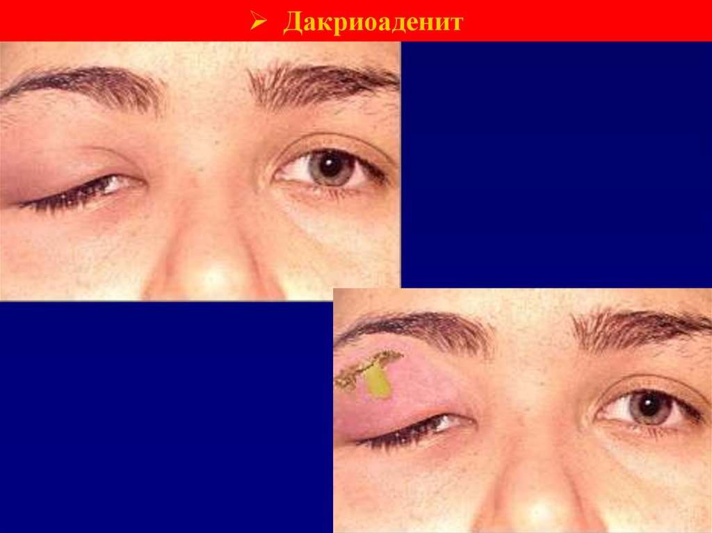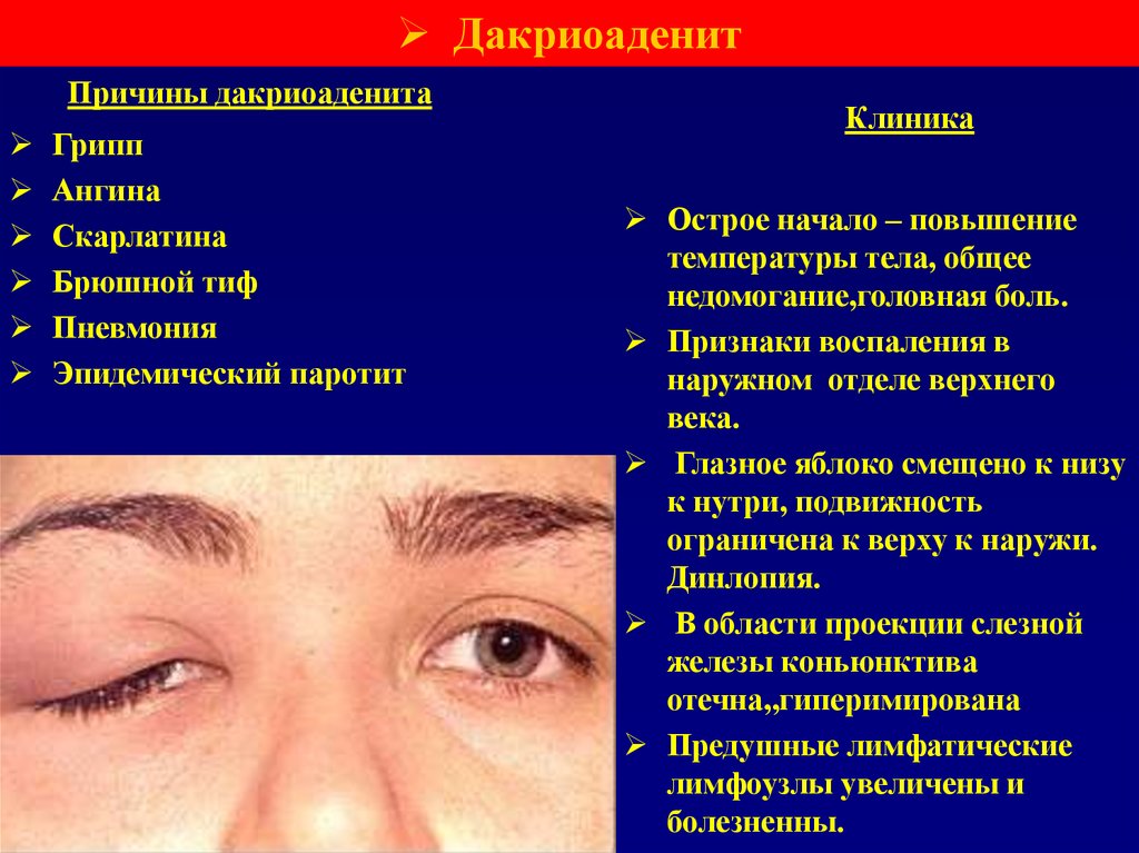• Типичными признаками: псевдоптоз, слизисто-гнойное