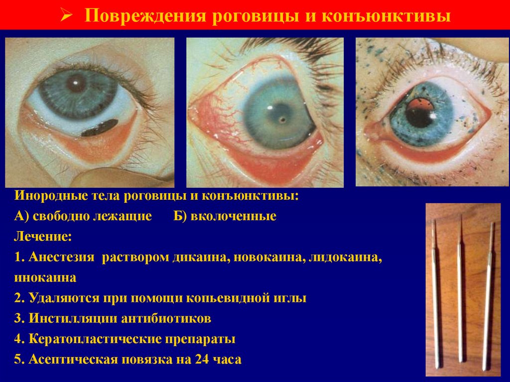 конъюнктиве век и переходных складок, легко