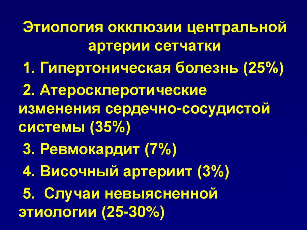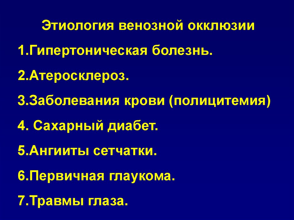 Этиология венозной окклюзии1.Гипертоническая болезнь.