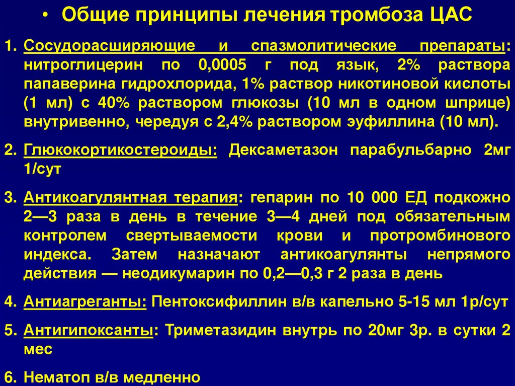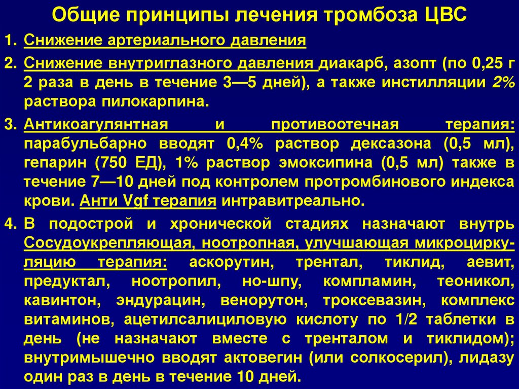 Общие принципы лечения тромбоза ЦВС1. Снижение артериального давления