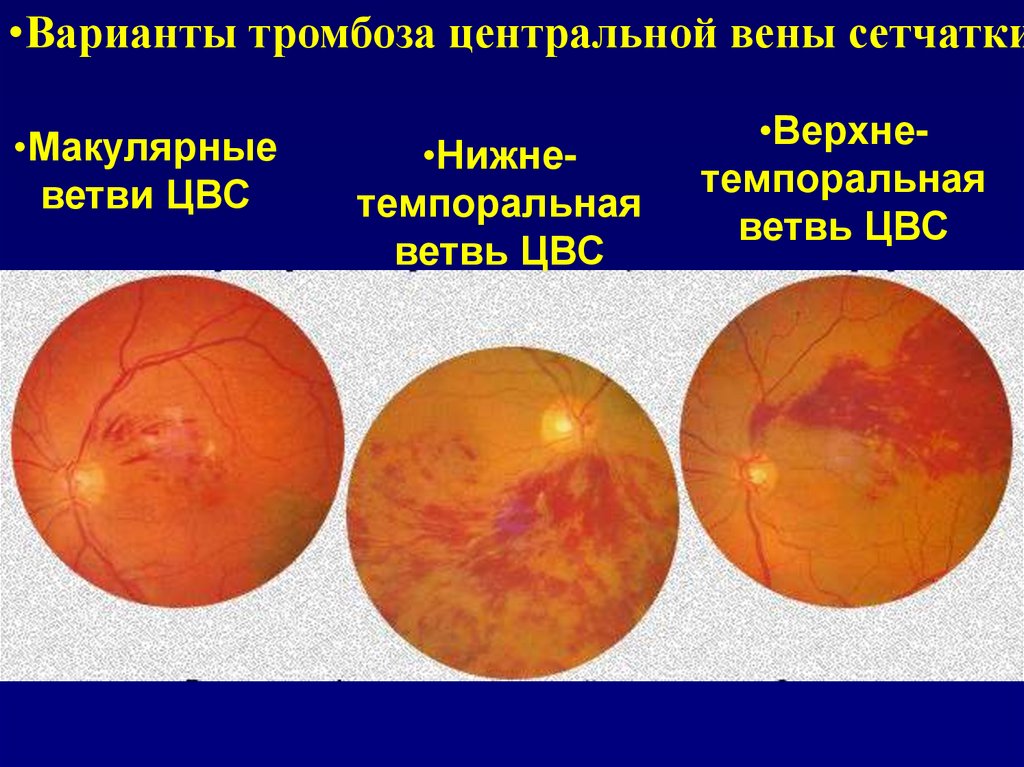 •Варианты тромбоза центральной вены сетчатки•Макулярные