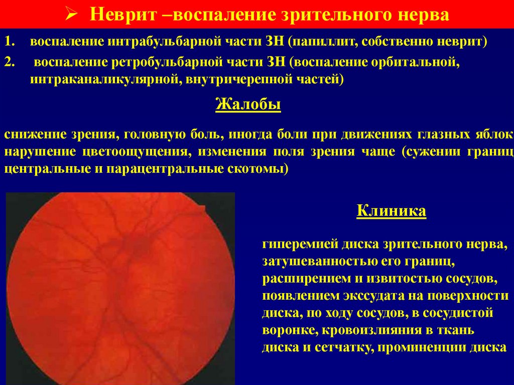 Неврит –воспаление зрительного нерва1.