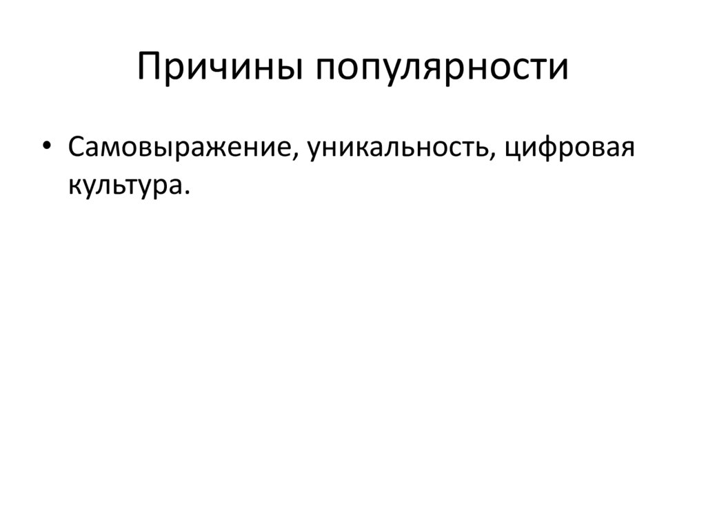 Социальные особенности• Онлайн-сообщества, эстетка, собственный