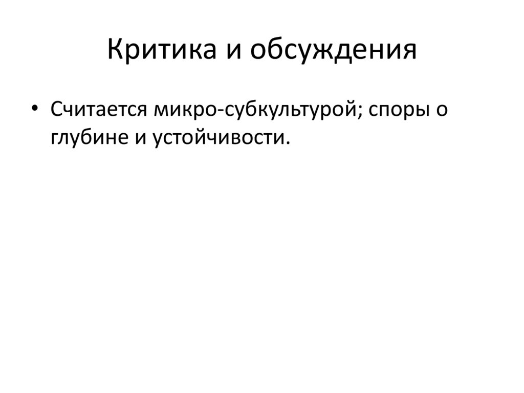 Критика и обсуждения• Считается микро-субкультурой; споры о