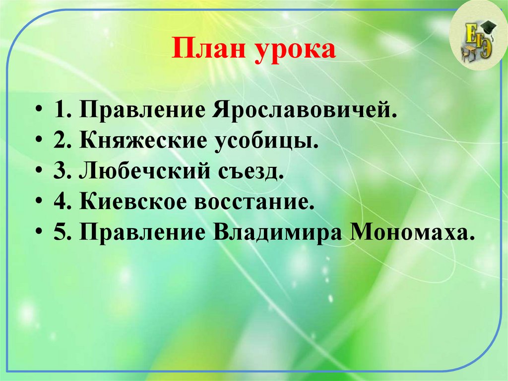 План урока• 1. Правление Ярославовичей.