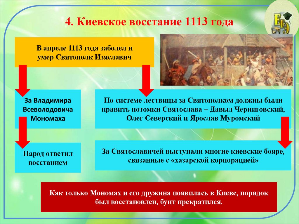4. Киевское восстание 1113 годаВ апреле 1113 года заболел и